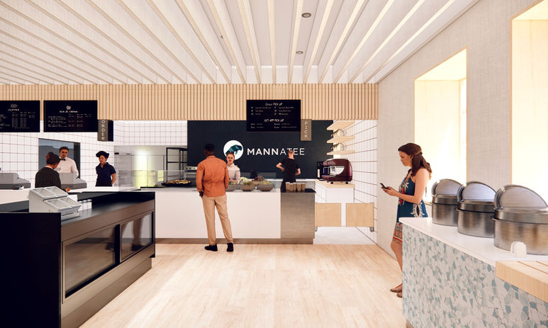 Our client, Cornell Dining, wanted to transform the current design of the Cafe in the Mann Library to a space where more students will be attracted to and spend more time. We weaved the MANNatee brand concept throughout our space, and highlighted artworks from Glyphe, a local artist we found inspiration from when creating our design. Our challenge was to transform the space to have effective circulation for staffs and customer, distinct separation among buying, waiting, sitting spaces, and welcoming atmophere that creates a unique and comfortable space.